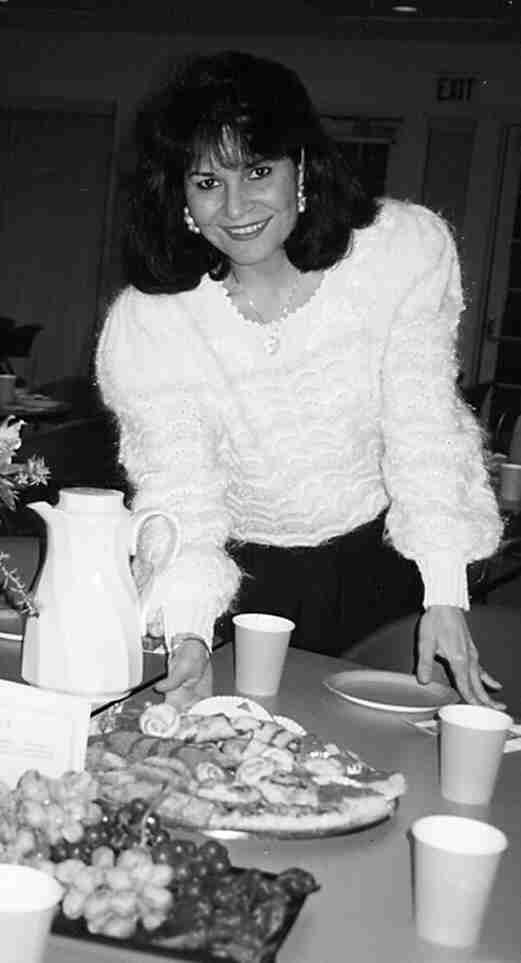 ![]() | As their first joint outreach activity, the Jewish-Palestinian Living Room Dialogue Group hosted 60 people at a formal evening presentation/dessert, sharing their success at working together, and demonstrating hope for a peaceful outcome in the Middle East. Talks by dialogue group participants were followed by discussions at each table and an invitation to attend a similar group. Here, Henriette Zarour contributes a Palestinian dessert to a table laden with Jewish and Palestinian delicacies. |
