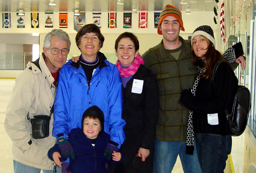 December, 2001: Len, Libby, Niko/4, Eleanor, Adam, Raychel ice skating during family reunion in San Mateo.